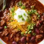 A rich and flavorful chili made with tender chuck roast and savory ground beef, perfect for family dinners and game days.