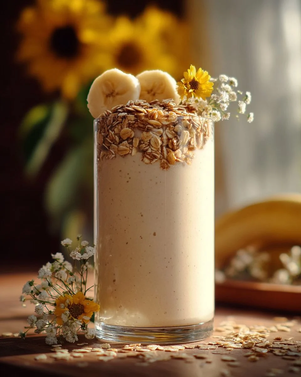 - Pour the smoothie into a glass and garnish with dried chamomile leaves or a slice of banana. Enjoy your smoothie!