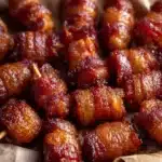 A delightful savory and sweet treat made with Little Smokies wrapped in crispy bacon and caramelized brown sugar.