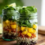 This salad is an ideal choice for several reasons. First, it incorporates a variety of colorful ingredients packed with essential nutrients, making it a healthy meal option. The combination of quinoa or rice, black beans, and cheese provides a satisfying mix of protein and fiber, keeping you full and energized. Additionally, it’s perfect for meal prepping for the week, as the layers stay fresh in mason jars for up to 24 hours. Plus, it’s fully customizable. You can easily swap out ingredients based on your preferences or what you have on hand.