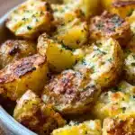 Crispy on the outside and soft on the inside, these Cheesy Ranch Oven Roasted Potatoes are a delicious side dish, perfect for any meal.