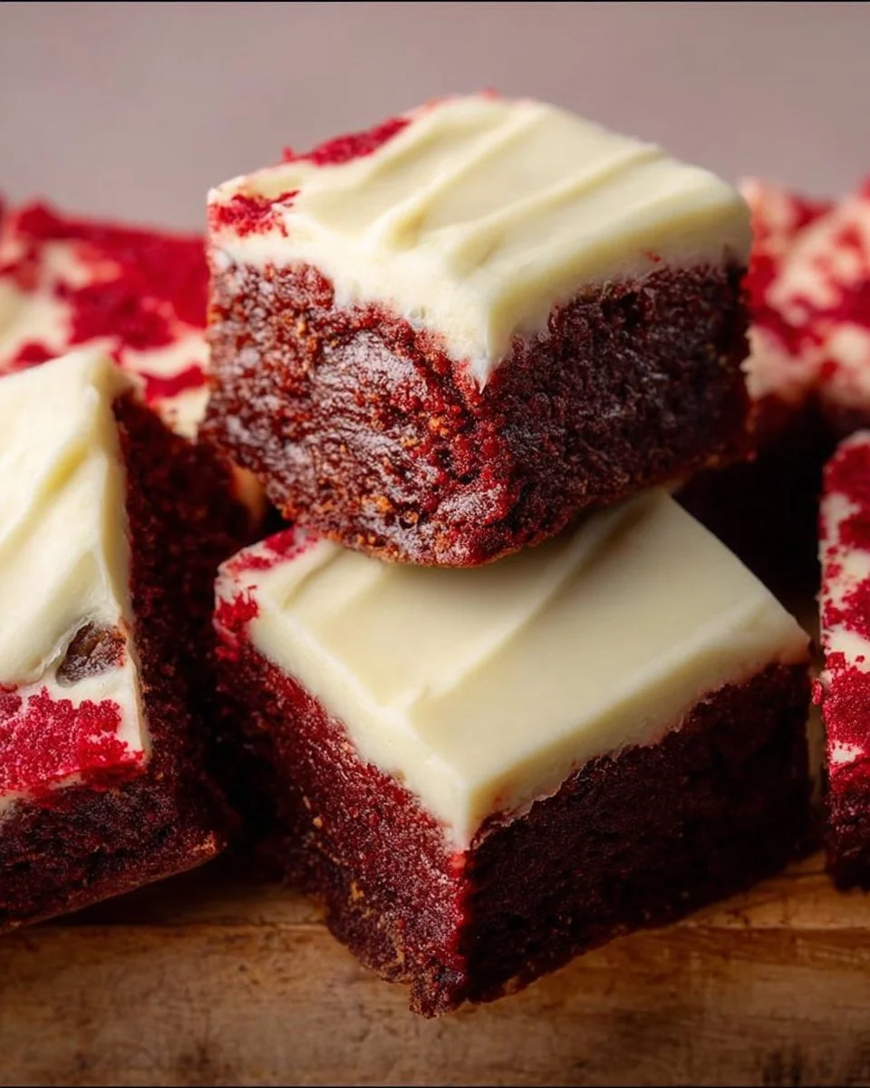 A delightful twist on a classic dessert, these chewy red velvet brownies are rich in flavor and visually stunning, topped with a smooth cream cheese frosting.