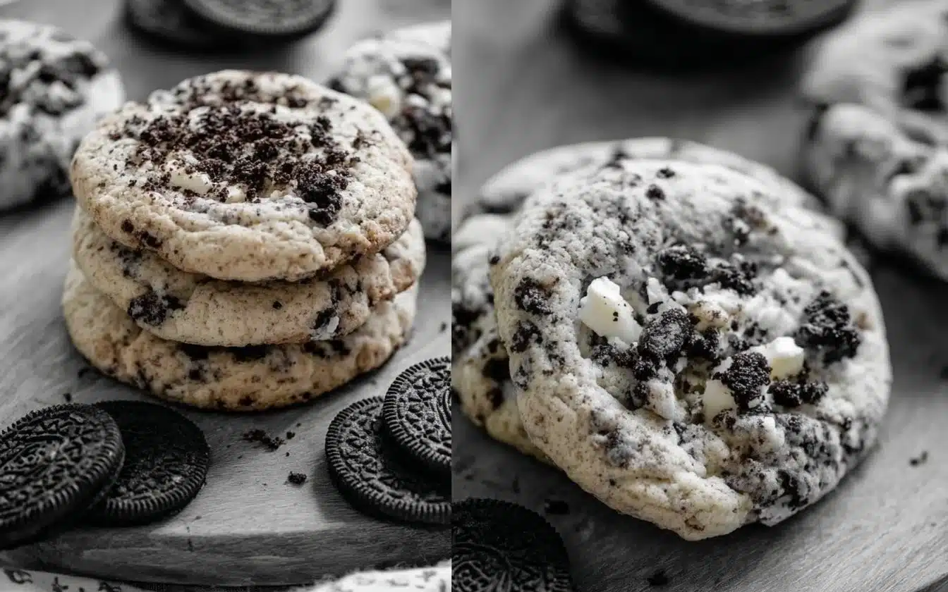 Delightful Cookies and Cream Cookies combining chocolate sandwich cookies with a soft, chewy base, enhanced by white chocolate chips.