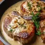 Serve these delicious pork chops with a side of mashed potatoes, rice, or steamed vegetables. The creamy sauce pairs wonderfully with these sides, making for a hearty meal. Don’t forget to drizzle extra sauce over your sides for added flavor!