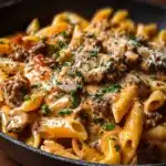 A comforting dish that combines ground beef, creamy sauce, and pasta for a quick and delicious dinner.