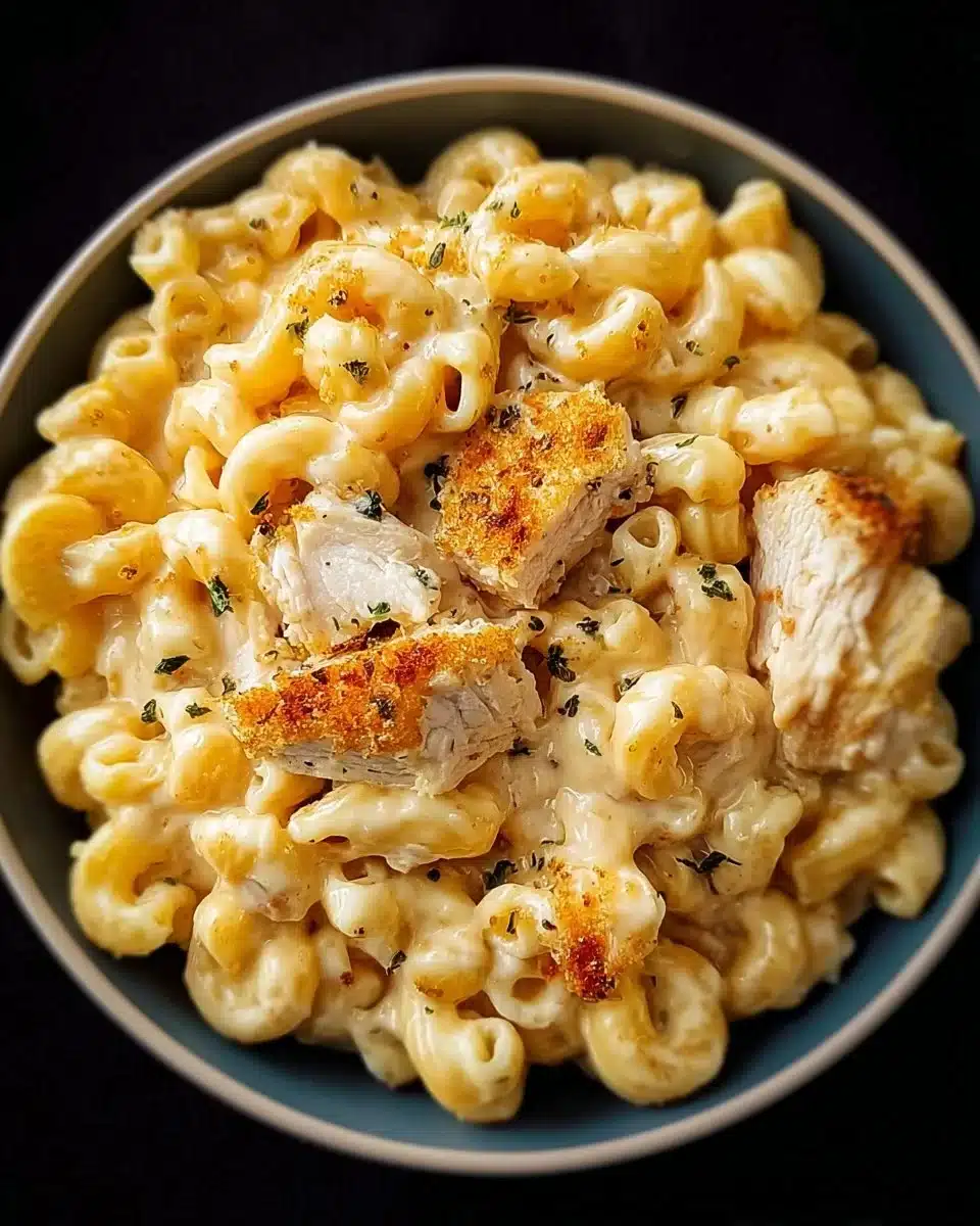 5. Combine: Gently fold in cooked pasta and sautéed chicken until coated in the cheese sauce.