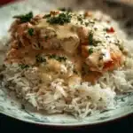 A comforting dish that combines tender chicken with a rich, creamy sauce and fluffy rice, perfect for family dinners.