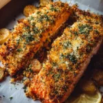 Crispy Parmesan Salmon Bake is a delicious and easy-to-make dish that combines the rich flavors of salmon with the satisfying crunch of a cheesy, breadcrumb coating. This recipe is perfect for a quick weeknight dinner or a special weekend meal, and it’s sure to impress your family and friends with its vibrant flavor and enticing aroma.