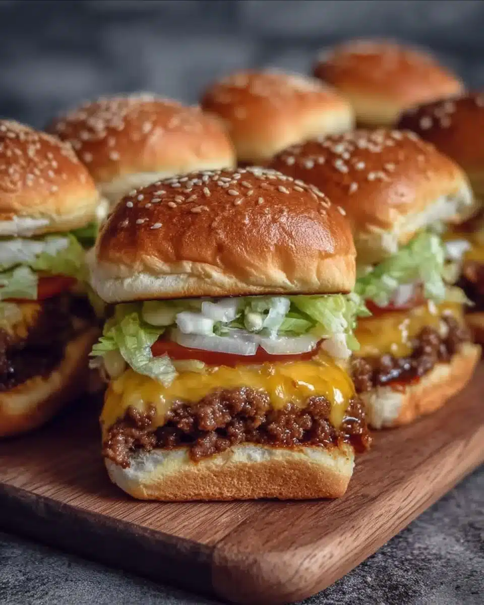 Delicious bite-sized Big Mac sliders that capture the classic flavors of a Big Mac, perfect for game days or family dinners.
