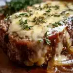 A delightful twist on classic meatloaf, combining the rich flavors of French onion soup with tender ground beef for a comforting meal.