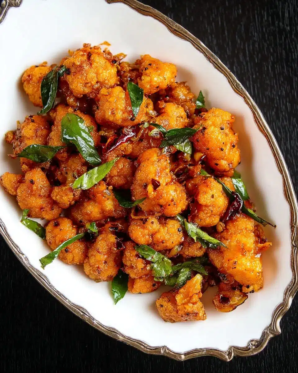 Gobi 65 is a flavorful Indian snack made from crispy cauliflower florets, perfect for parties or as an appetizer.