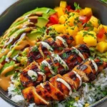 Grilled Maple Sriracha Chicken Bites with Coconut Rice and Mango Avocado Salsa Bowl with Chili Mayo is not just a meal; it’s an experience bursting with flavor and warmth. One taste of the sweet, spicy chicken, combined with the creamy coconut rice and fresh salsa, and you’ll understand why this dish is a crowd favorite. Perfect for any occasion, this recipe is sure to be a hit at your next gathering. Enjoy the delightful interplay of flavors and textures while you savor every bite of this delicious bowl!