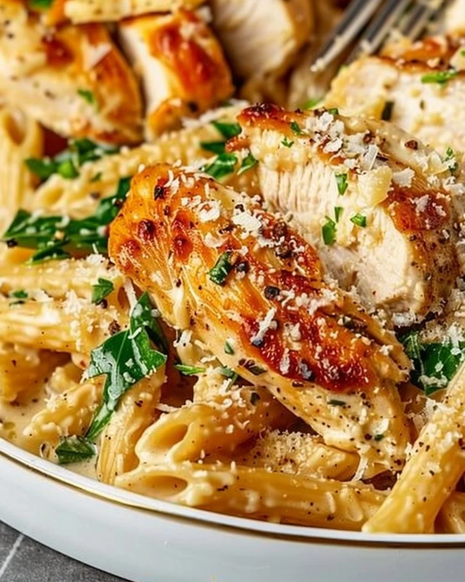 Making this dish is straightforward: cook the pasta, sear and season the chicken, create a simple garlic-parmesan sauce, fold in Greek yogurt and cheese, then combine everything and finish with fresh greens or herbs. Each step builds on the last, so the pasta soaks up a silky, savory sauce and the chicken stays tender and juicy. The method keeps the sauce light yet creamy and avoids overcooking the dairy by adding yogurt at the end and gently warming it rather than boiling.