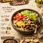 High-Protein Cheeseburger Bowls Recipe – Low-Carb Meal Prep with Ground Beef & Burger Sauce