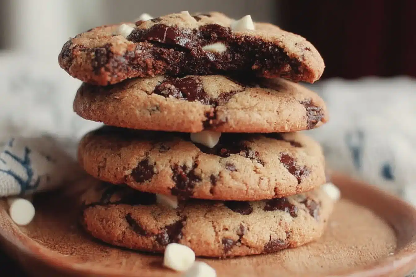 Inside Out Chocolate Chip Cookies offer a delightful twist on the classic chocolate chip cookie. Instead of being filled with regular chocolate chips, these cookies are packed with creamy white chocolate chips, making them rich and delicious. They have a soft, chewy texture and a beautiful dark color from the cocoa powder. This recipe is perfect for anyone who loves the combination of chocolate flavors and wants to impress family and friends with something unique.