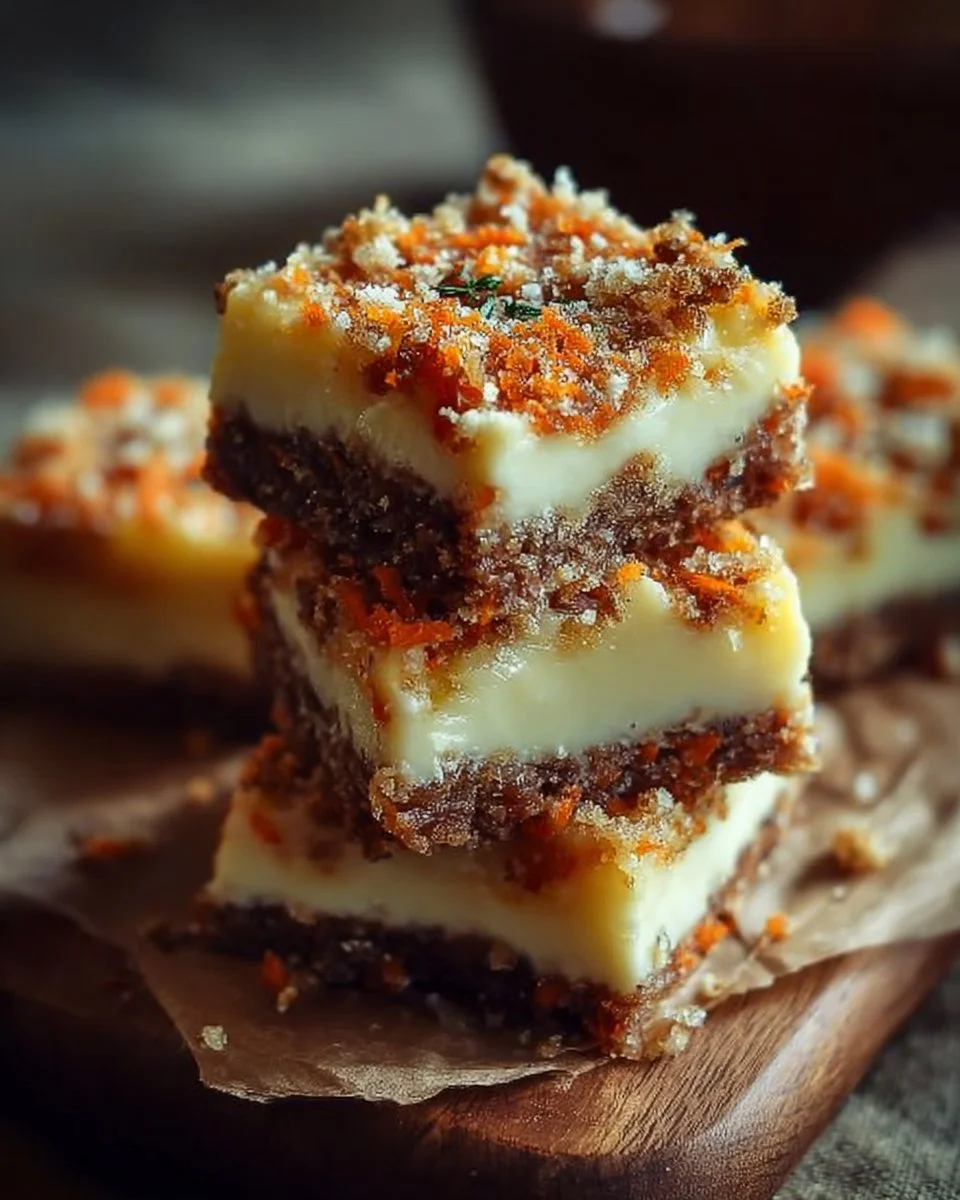Deliciously unique Carrot Cake Cream Cheese Bars combining the flavors of carrot cake with a rich cream cheese layer.