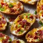 Loaded potato skins provide an irresistible combination of crispy texture and savory flavors, making them a versatile dish for any gathering. With simple ingredients and easy-to-follow steps, you can enjoy this fun and tasty snack at home. Don’t hesitate to customize the toppings to make them your own! Now, whether you’re preparing these for a party or a cozy night at home, you’re set to impress with your loaded potato skins. Happy cooking!