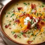 Loaded Potato Soup is a comforting and hearty dish that brings warmth to your table. It’s perfect for chilly days or when you need a meal that feels like a hug. This soup is simple to prepare and is packed with the delicious flavors of potatoes, bacon, and cheese. It’s a crowd-pleaser that everyone will enjoy.