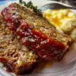 Serve slices of meatloaf warm on a plate, ideally with a side of creamy mashed potatoes and your choice of vegetables like green beans or corn. You can also drizzle some additional ketchup on top for extra flavor. For a casual meal, pair it with a simple salad on the side.