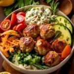 The Mediterranean bowl with turkey meatballs is a delightful dish that not only bursts with flavor but also aligns with a healthy lifestyle. It’s a meal that brings nutrients and satisfaction together, making it an ideal choice for any time of day. Whether you’re preparing dinner for the family or prepping meals for a busy week ahead, this recipe is sure to be a hit. Enjoy creating this warm and inviting bowl, and don’t hesitate to tailor it to your taste preferences. Happy cooking!
