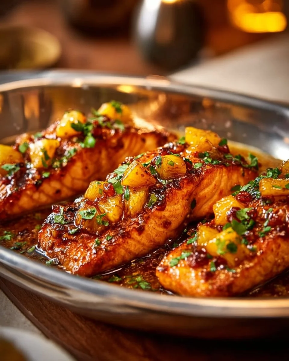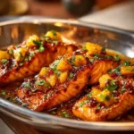 Pineapple Glazed Salmon is a bright, tropical take on a classic weeknight favorite, pairing tender baked salmon with a sticky-sweet pineapple glaze that caramelizes at the edges. If you enjoy sweet-savory finishes and easy oven cooking, this recipe is an approachable way to bring island flavors to your table; for another glaze-forward dish worth trying, see this Asian glazed orange chicken recipe for inspiration. This article walks through why this dish works, how to make it step by step, helpful tips, flavor twists, serving ideas, storage guidance, approximate nutrition facts, and answers to common questions.
