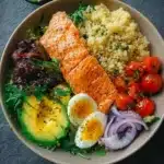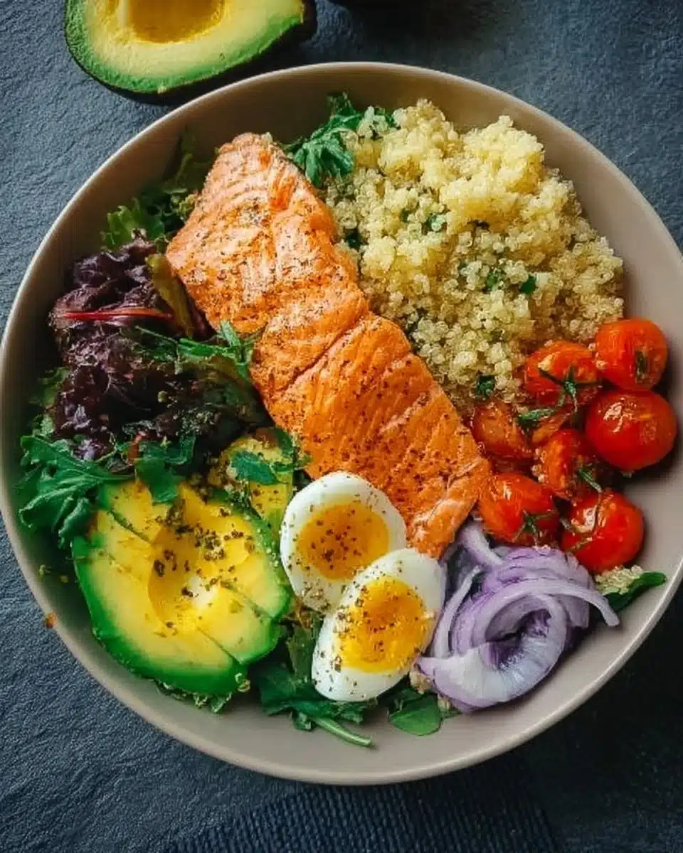 The Quick Salmon Protein Bowl is a delicious and nutritious meal that combines fresh ingredients for a balanced dish. It is perfect for lunch or dinner when you need something quick but satisfying. With healthy fats from the salmon and avocado, fiber from quinoa and spinach, and vibrant flavors, this bowl is both fulfilling and good for you. Plus, it takes less than 30 minutes to prepare!