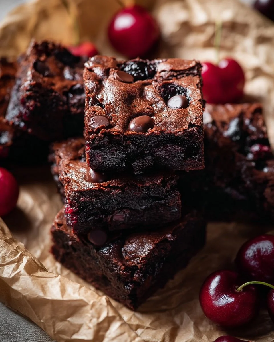 Fudgy chocolate brownies with bursts of roasted cherry sweetness in every bite.