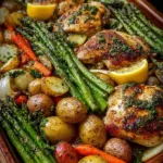 Sheet Pan Garlic Butter Chicken and Veggies is not only delicious but also incredibly practical. The simplicity of one-pan meals means less time spent on prep, cooking, and cleaning. Plus, you can customize your choice of vegetables to suit your family’s preferences or whatever you have on hand. This dish is packed with flavor thanks to the garlic butter, making it a satisfying meal that doesn’t feel like a compromise. If you’re busy during the week but still want to serve a wholesome, home-cooked dinner, this recipe is a lifesaver.
