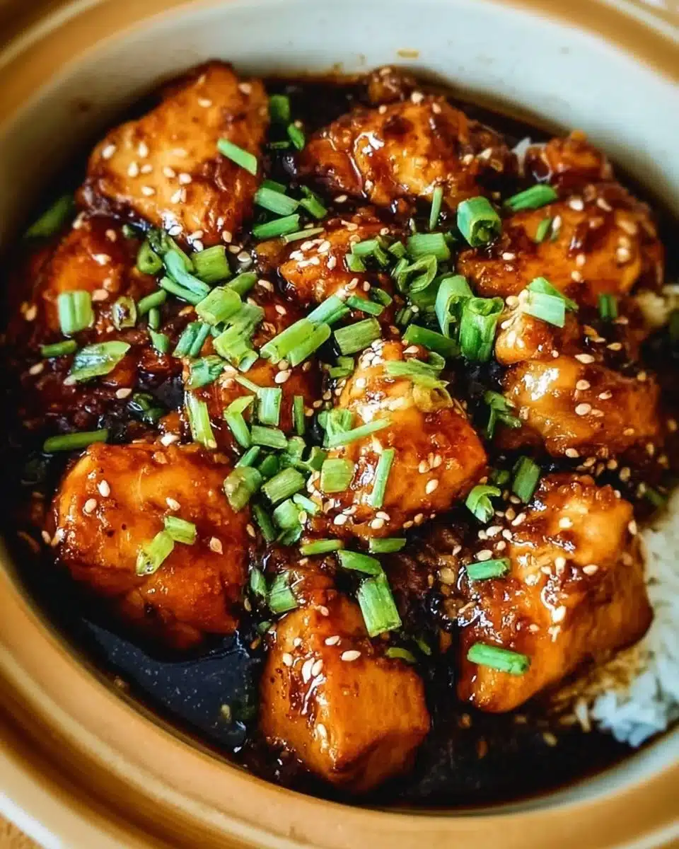 6. Return the chicken to the slow cooker or pour the thickened sauce over the chicken. Garnish with sesame seeds and green onions.