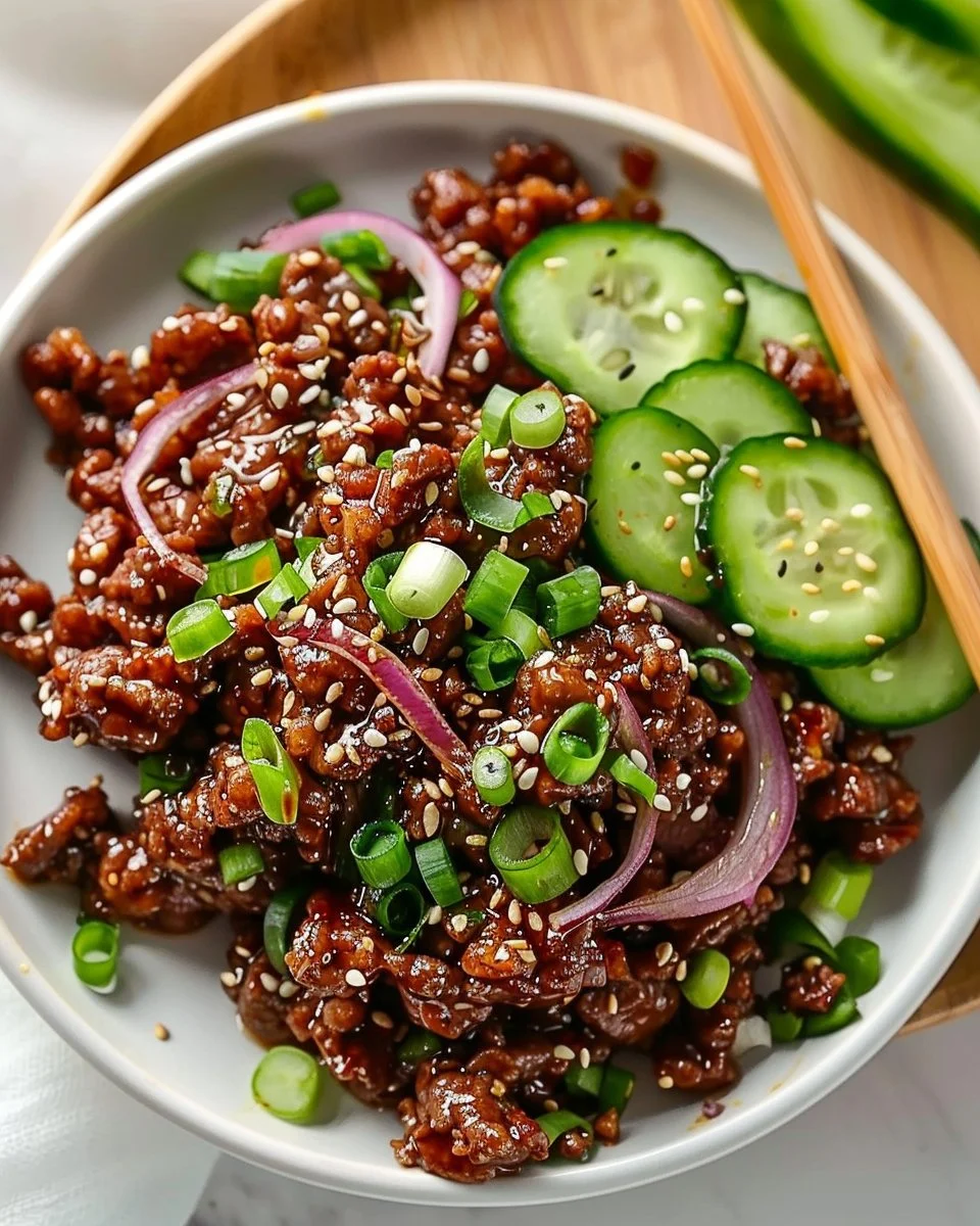 Serving Suggestions Spicy Keto Korean Ground Beef with Cucumber Salad