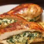 Tender chicken breasts filled with a flavorful spinach and cheese mixture, making it a healthy low carb dinner option.