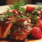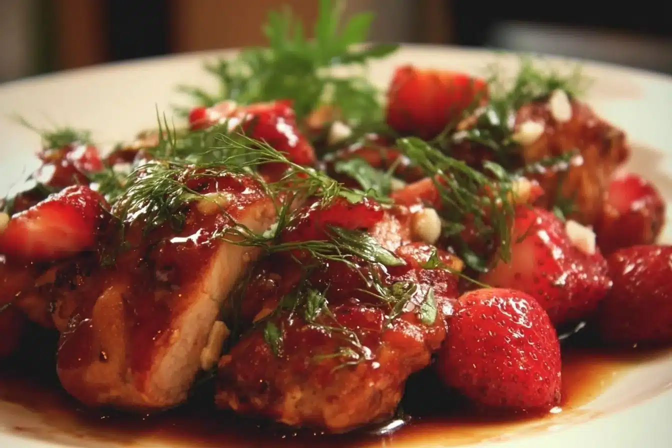 A delightful recipe combining the sweetness of strawberries with savory chicken, creating a visually stunning and delicious dish.