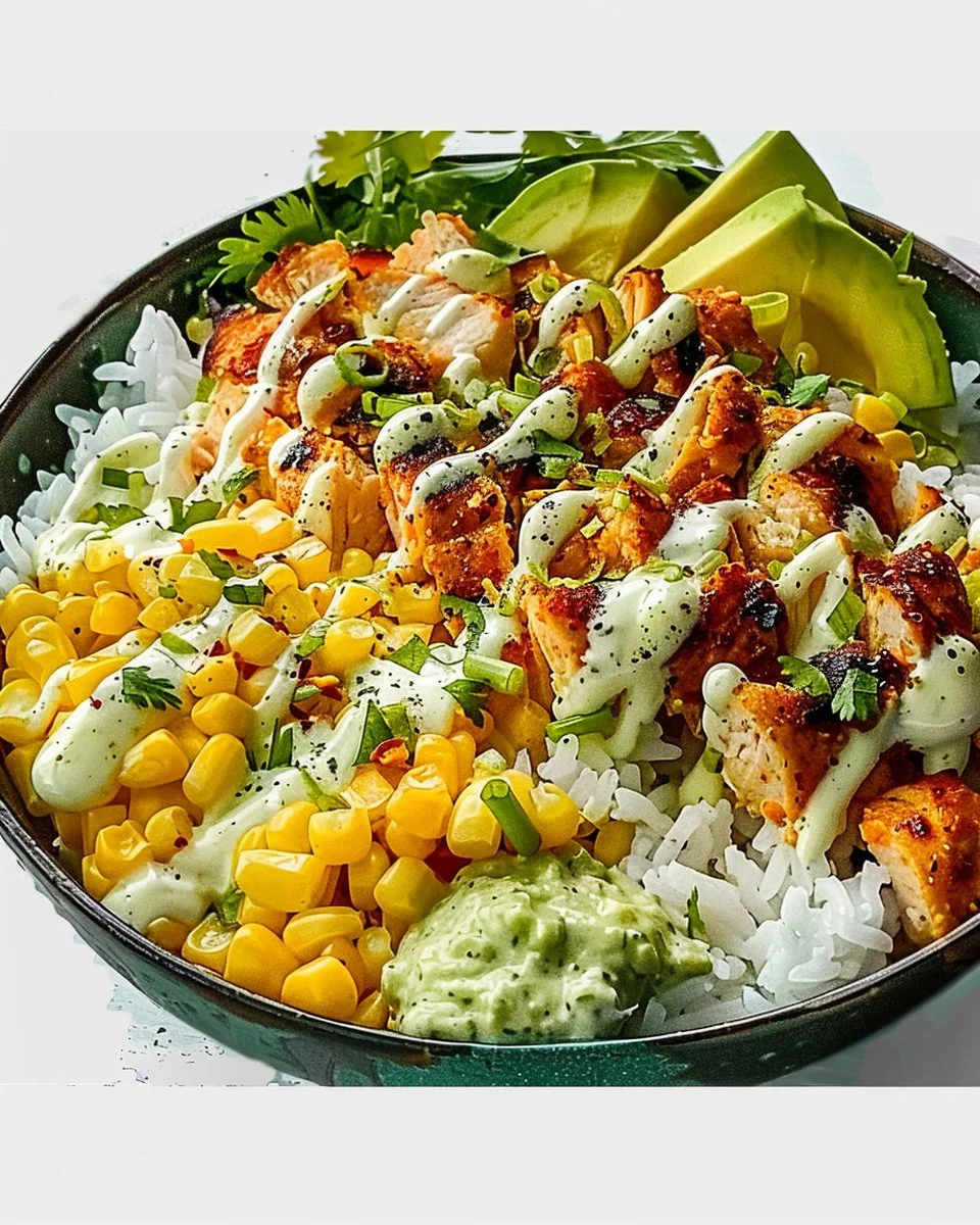 This recipe checks a lot of boxes: ready in about half an hour, balanced (protein + carbs + veggies), and easy to scale. The flavor profile leans on smoky paprika and chili powder to give the chicken warmth, while charred corn brings sweetness and texture. A creamy cilantro-lime sauce brightens every bite and ties the bowl together.