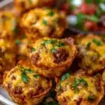 Serve Taco Ranch Bites warm, right out of the oven. They make a great appetizer, snack, or even a fun meal. You can also serve them with extra ranch dressing or salsa on the side for dipping.
