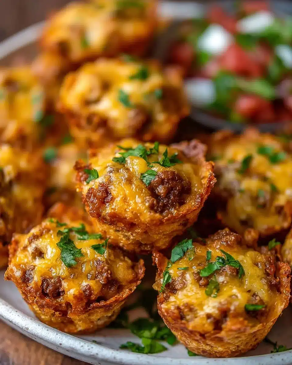 Delicious and easy-to-make Taco Ranch Bites are perfect for parties or a quick family meal, featuring seasoned meat, creamy ranch dressing, and melted cheese on a crunchy base.