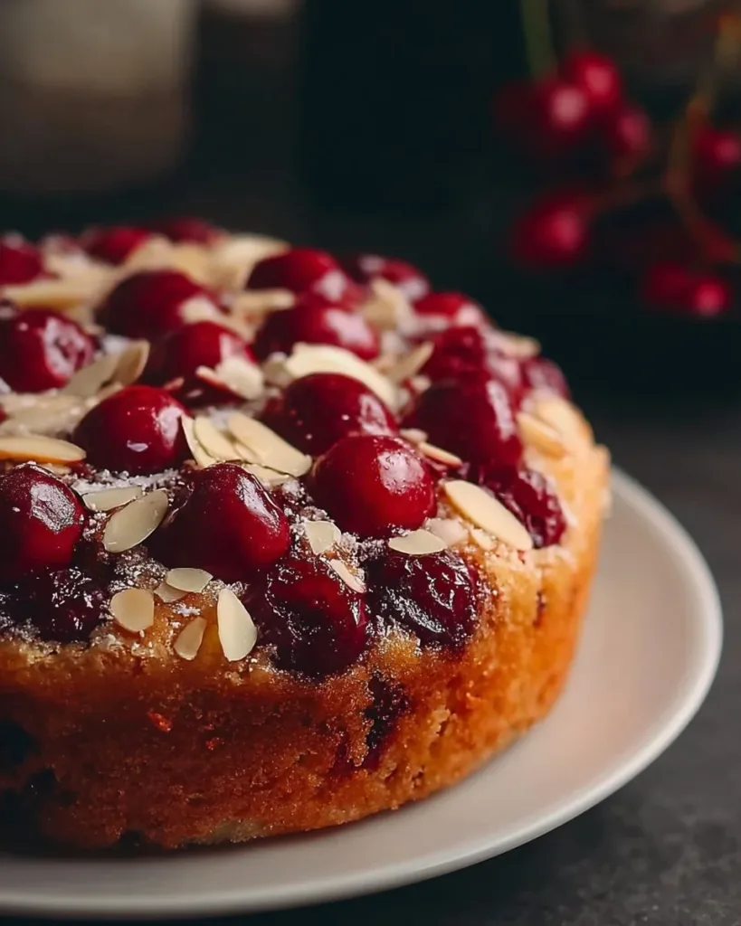 Delicious homemade Cherry Almond Cake with vibrant cherries and almond flavor