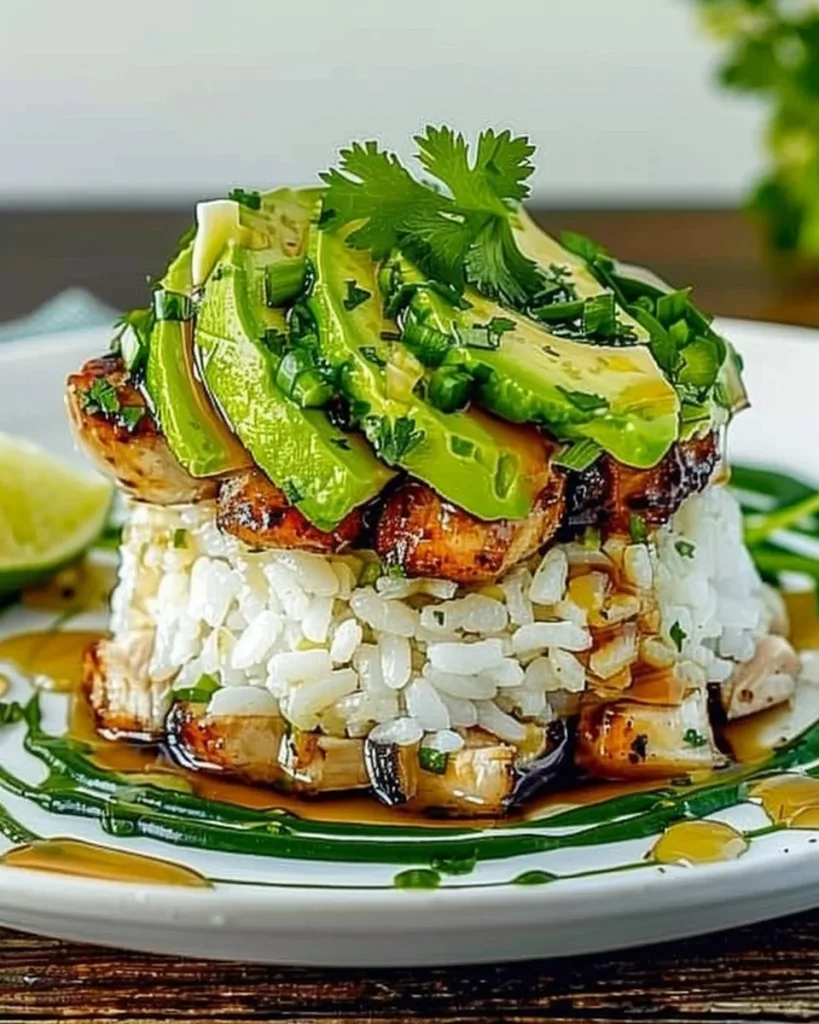 Tangy Honey Lime Chicken & Avocado Rice Stack
