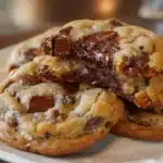 Delicious cookies with crispy edges and a gooey center, loaded with chocolate for a satisfying treat.